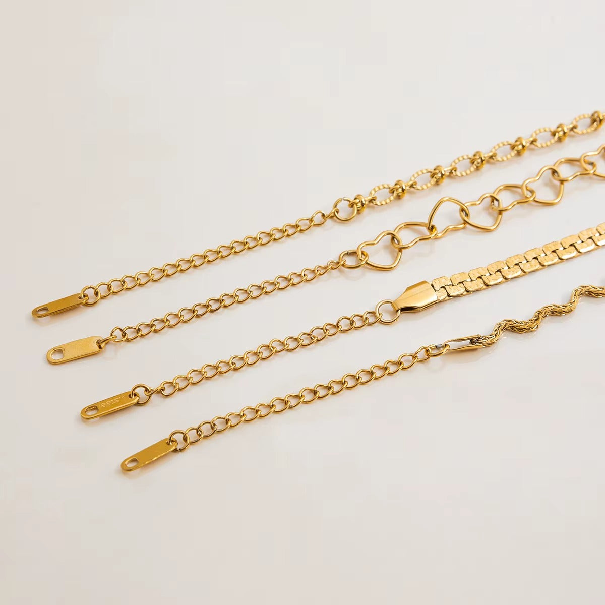 Un brazalete que late amor en cada eslabón. Diseño exclusivo de cadena formada por corazones abiertos entrelazados, creando un efecto romántico y moderno al mismo tiempo. Cada corazón tiene ese acabado pulido en oro 18k que brilla con luz propia, mientras la cadena fina y flexible se adapta perfectamente a la muñeca y se mueve con suavidad.